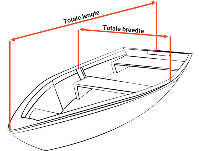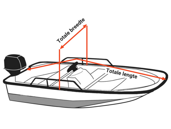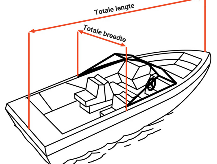 Dan meet je voor een hoes voor open boten van voor naar achter over de uitstekende objecten heen. Ook van links naar recht meet je over het hoogste punt heen. Dit is de afmeting die de boothoes moet hebben om jouw boot goed af te dekken.