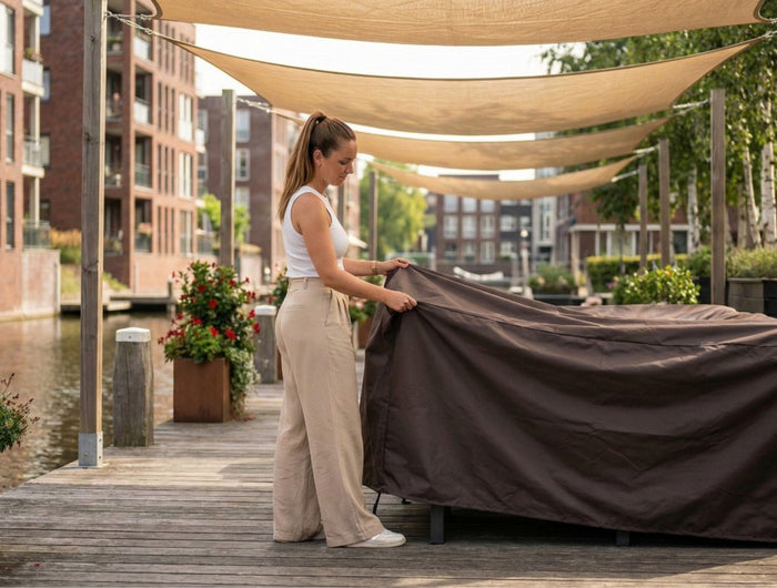 Ventileer bij lange stalling: Haal de hoes af en toe los zodat eventueel vocht kan ontsnappen.