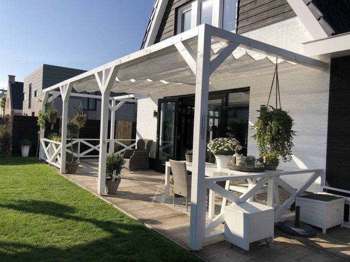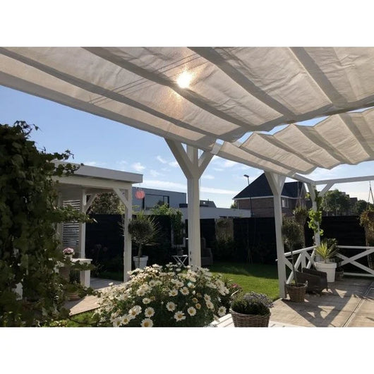 Un voile harmonica est un système de protection solaire qui peut être ouvert et fermé, c’est pourquoi on les appelle aussi des rideaux coulissants. Les voiles harmoniques sont fabriqués en plastique HDPE, un matériau résistant aux UV à 95 %. Ils laissent passer la lumière du soleil et la pluie, mais pas les rayons UV, ce qui vous garantit toujours une luminosité suffisante sous le voile. Si vous souhaitez profiter du soleil, vous pouvez facilement replier le voile grâce au système de poulie.
