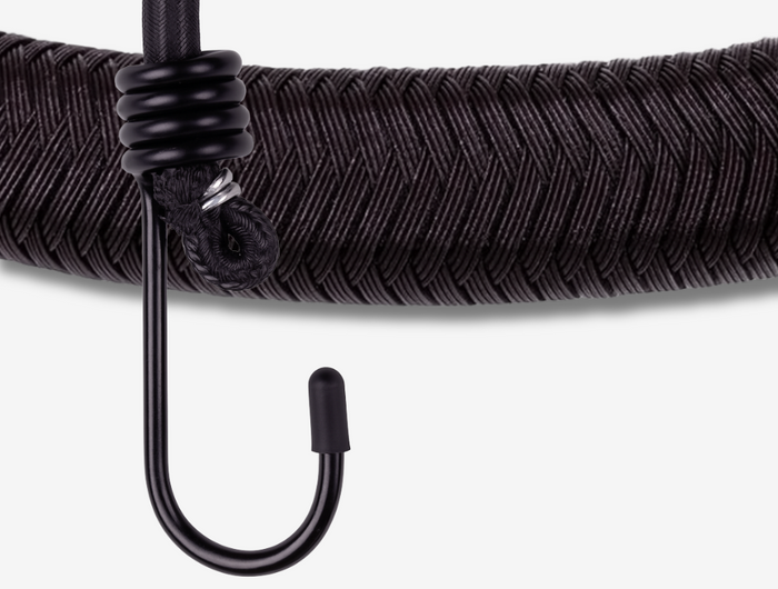 Le tendeur est compact, flexible et convient aussi bien pour une utilisation temporaire que prolongée. Grâce aux crochets doubles, il est polyvalent et facile à fixer à des anneaux, des tubes ou des crochets.